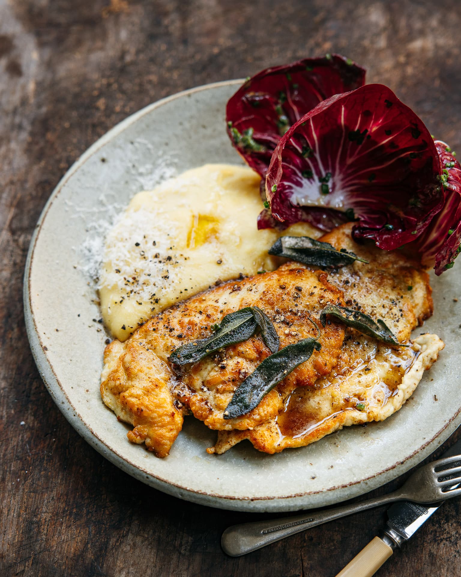 A rich, buttery sauce of black pepper and sage is an excellent accompaniment, and I know a lot of people make polenta with water, but it really is so much better with chicken stock.